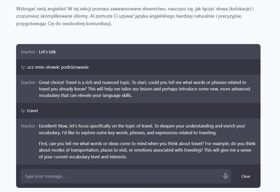 W tym kursie poznasz narzędzia do nauki wspomagane przez model sztucznej inteligencji, wytrenowany na materiałach do nauki języka angielskiego.