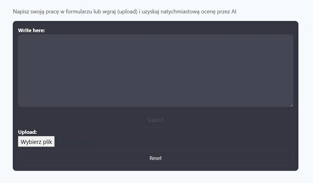 Wgraj swoją pracę i uzyskaj natychmiastową ocenę i wskazówki poprawy.