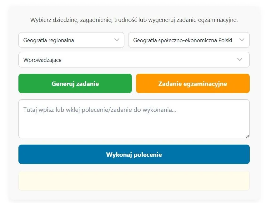 W tym module nauka zamienia się w grę. Nasz generator AI tworzy niekończącą się liczbę quizów, gier typu „kto? co? kiedy?” oraz interaktywnych osi czasu, które pomagają opanować kluczowe daty, postacie i wydarzenia – od chrztu Polski po czasy współczesne. Dzięki formie zabawy dziecko chętnie ćwiczy i utrwala wiedzę, a zapamiętywanie staje się proste i przyjemne.