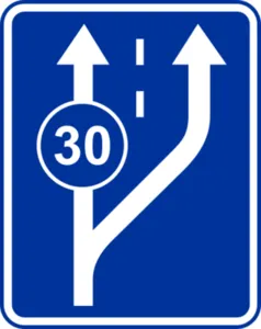 Początek pasa ruchu | Informuje o początku nowego pasa ruchu. |