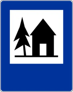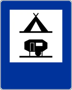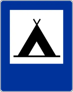 Obozowisko (kemping) | Informuje o miejscu do biwakowania (kemping). |