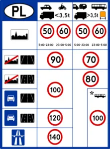 Dopuszczalne prędkości | Podaje dopuszczalne prędkości dla pojazdów. |