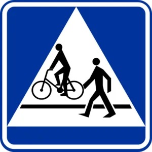 Czy ten znak informuje o przejściu dla pieszych, po którym mogą przejeżdżać rowerzyści?